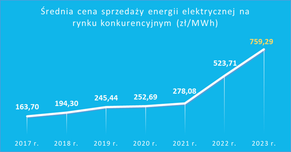 In 2023, the average annual energy sales price on the competitive market was PLN 759.29/MWh and compared to 2022, it was almost 45% higher.